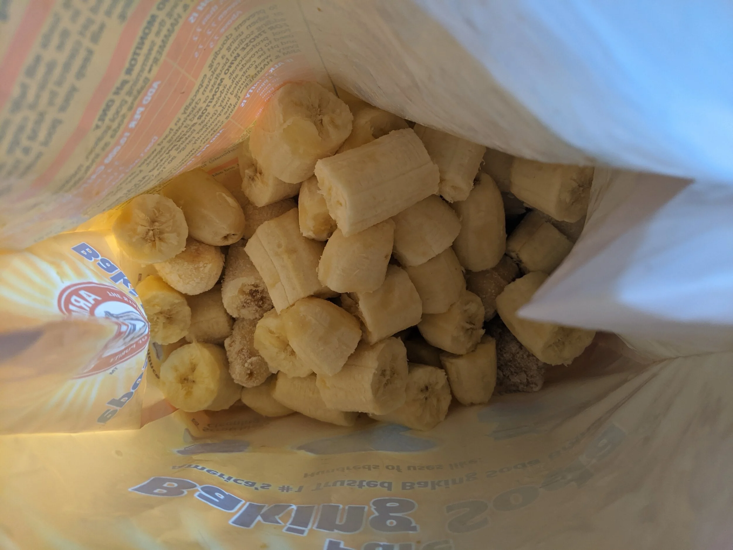 When you have bananas that are getting too ripe for eating (and you don’t need them for some brownies or berry bread), simply peel them, break them into chunks, and freeze them.